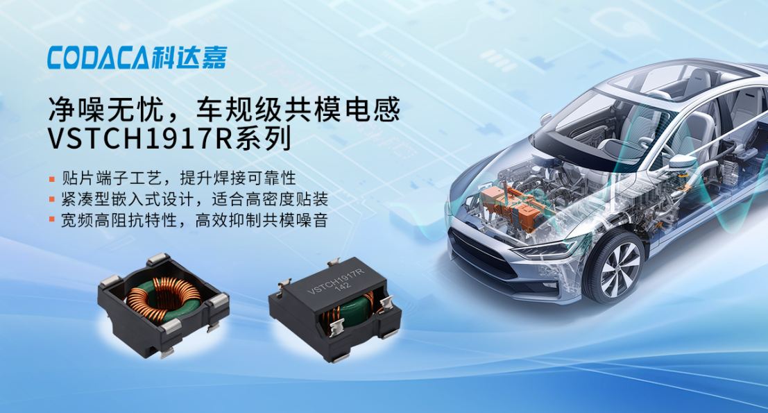 Mit der rasanten Entwicklung von Fahrzeugen mit neuen Energieträgern und intelligenten, vernetzten Fahrzeugtechnologien entwickeln sich Automobilelektroniksysteme hin zu höherer Integration, höherer Frequenz und größerer Zuverlässigkeit. Vor dem Hintergrund von Herausforderungen wie starker Vibration und schwerer elektromagnetischer Interferenz in Fahrzeugumgebungen stoßen herkömmliche Komponenten häufig an ihre Grenzen, um die Anforderungen zu erfüllen. CODACA hat die automotive-taugliche Common-Mode-Drossel-Serie VSTCH1917R eingeführt. Dank ihrer kompakten Bauweise, breitbandiger Eigenschaften und hohen Zuverlässigkeit bietet sie Lösungen zur Unterdrückung von Störungen im Common-Mode-Bereich für Antriebsstränge, Bordnetzspannungsversorgungen und Multimediageräte im Fahrzeug und trägt so dazu bei, dass automobilelektronische Systeme sicher, stabil und effizient arbeiten.